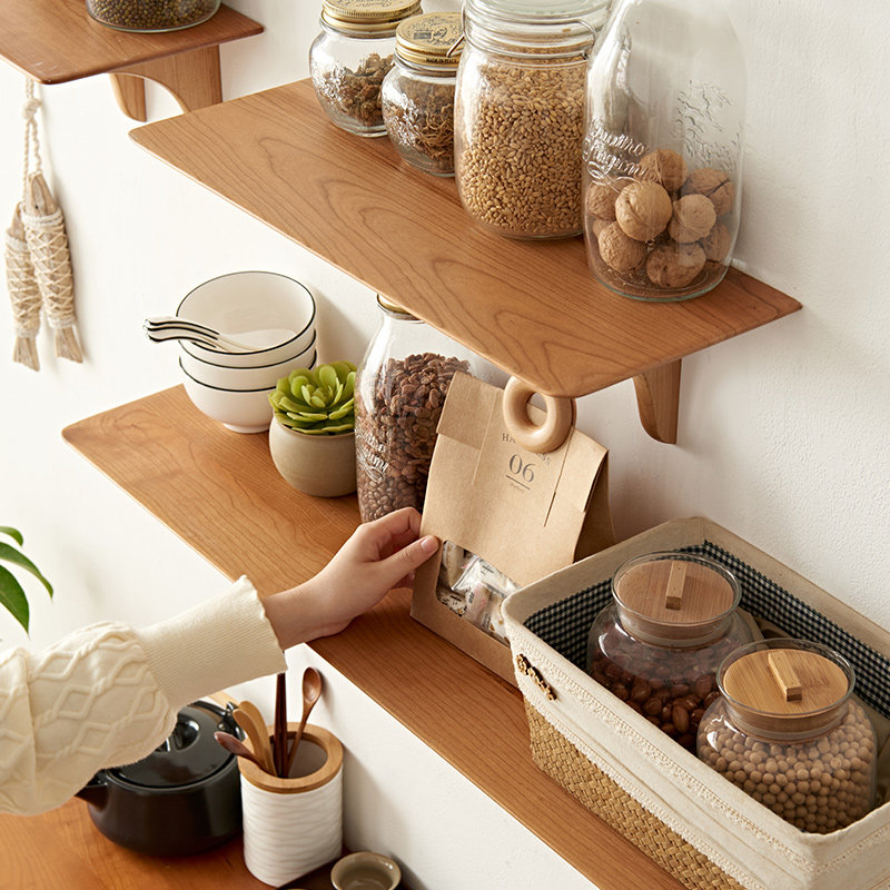 为您提供商品简约樱桃木家用墙面隔板 实木精磨一字板置物架卧室墙上收纳架日式的详细介绍,