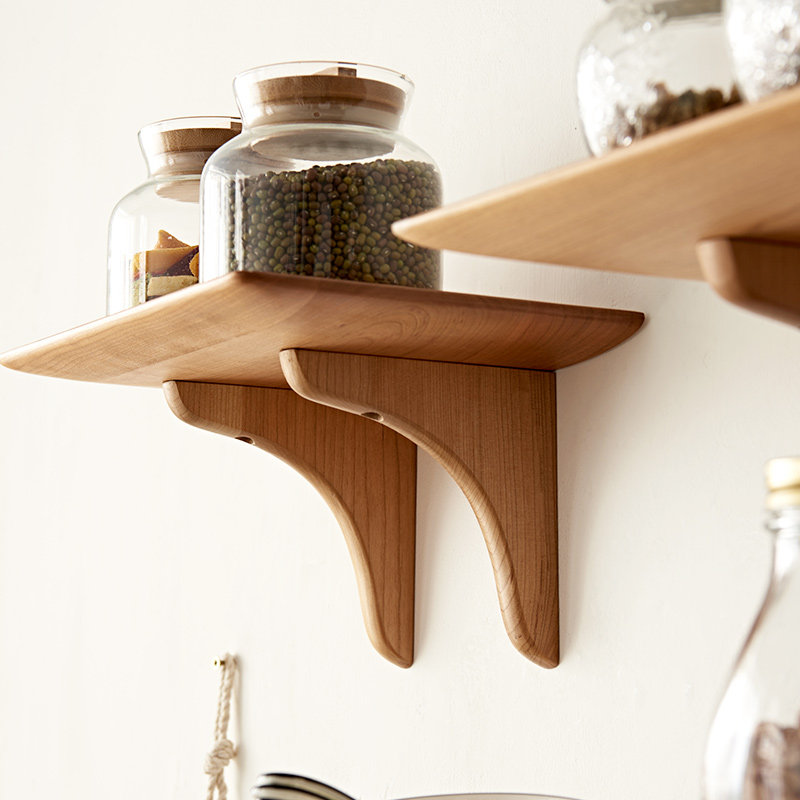 简约樱桃木家用墙面隔板 实木精磨一字板置物架卧室墙上收纳架日式