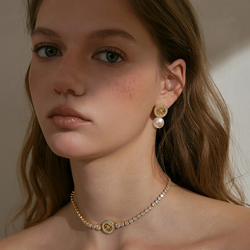 莓拉星语纽扣仿珍珠耳钉原创设计小香风法式 耳饰 张昕懿同款