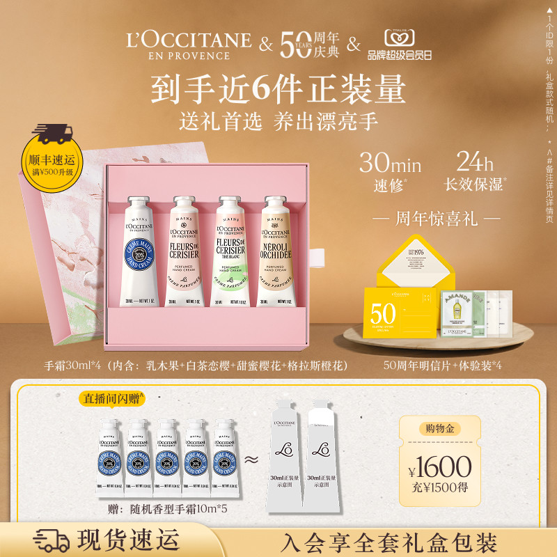 欧舒丹4支护手霜套装 白茶恋樱香氛保湿 滋润留香礼 50周年庆典由