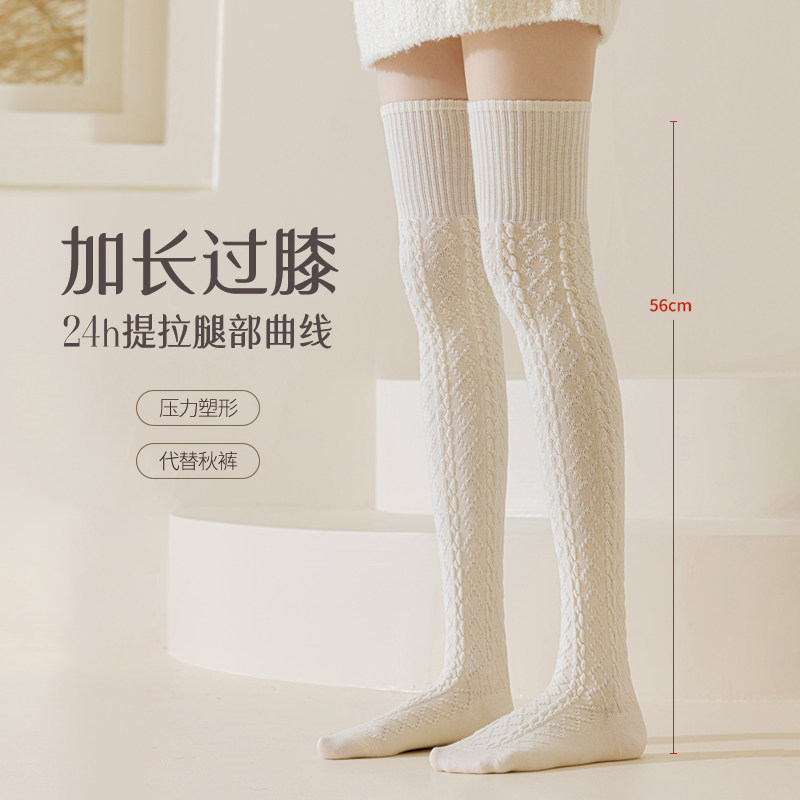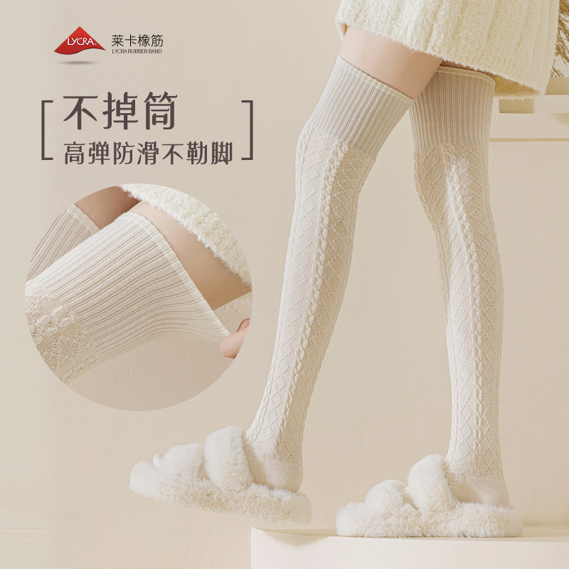 保暖加厚加绒大腿长腿白色高筒长袜子 羊毛过膝袜女长筒麻花秋冬季