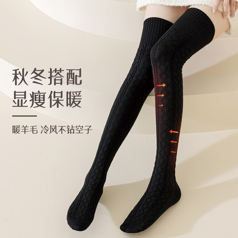 保暖加厚加绒大腿长腿白色高筒长袜子 羊毛过膝袜女长筒麻花秋冬季由