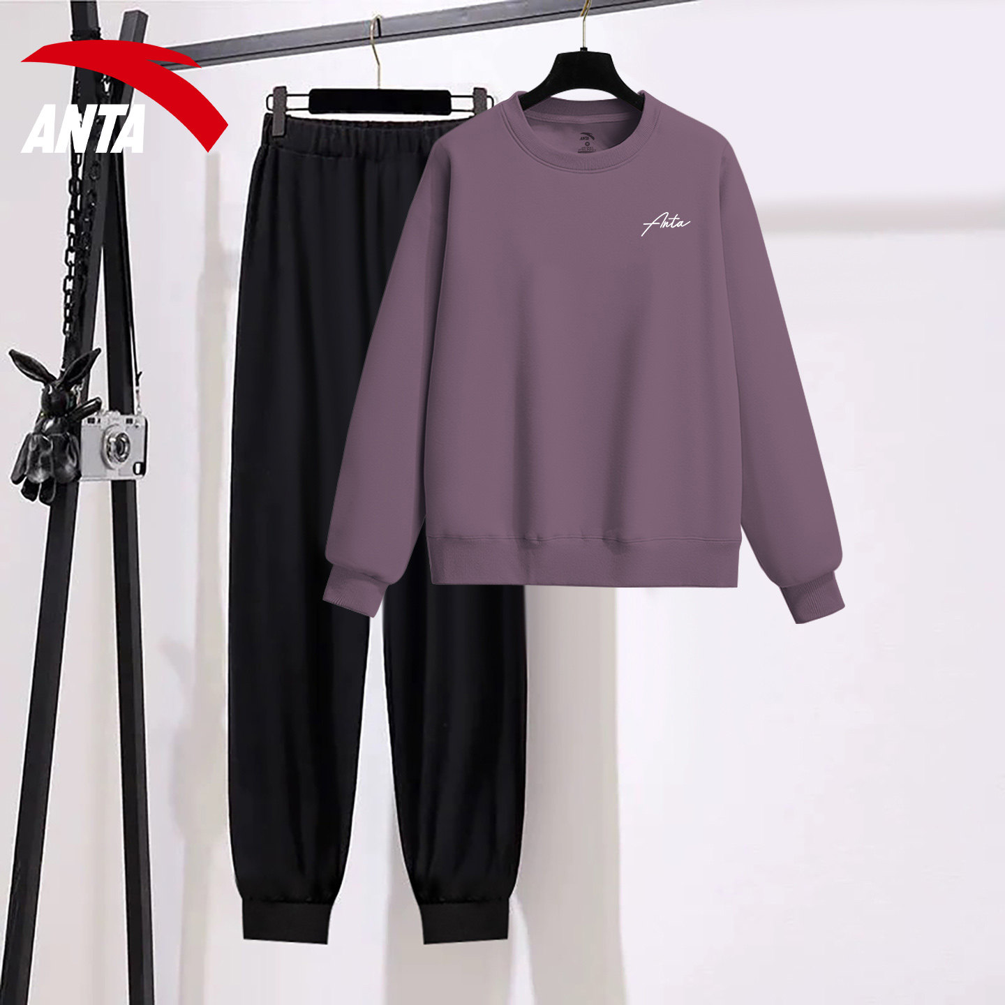 为您提供商品安踏运动套装 新款 显瘦两件套装 女士紫色卫衣落肩洋气休闲2026春季的详细介绍,