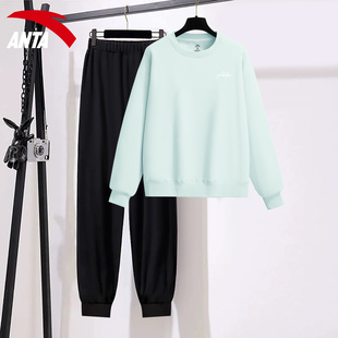 安踏运动套装 新款 显瘦两件套装 女士紫色卫衣落肩洋气休闲2026春季