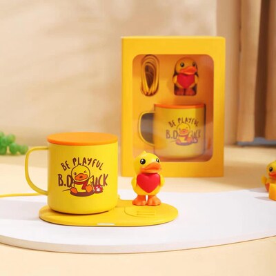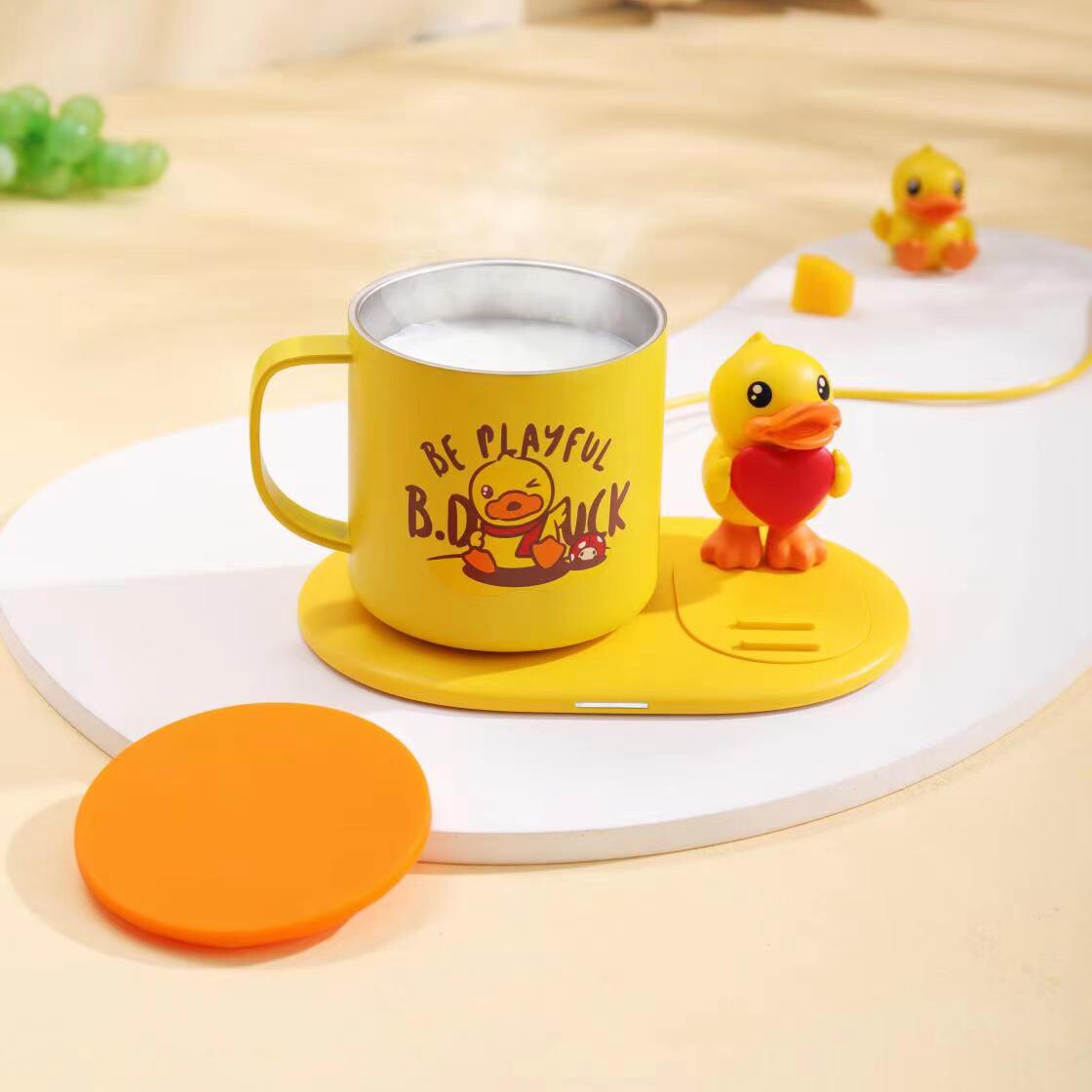 B.Duck小黄鸭马克杯垫加热办公桌55度无线充电USB316不锈钢杯子