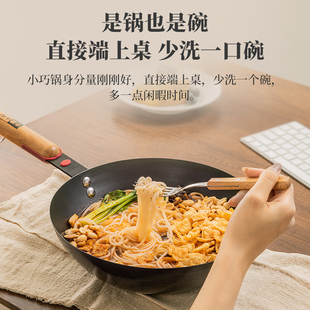 中康精铁炒锅氮化迷你小铁锅一人食无涂层不粘炒菜锅电磁炉燃气灶由
