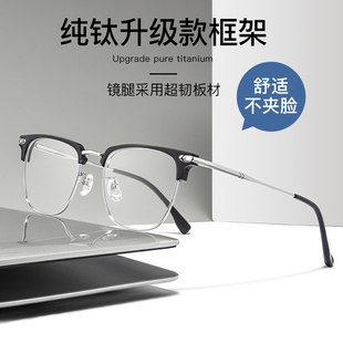 网上可配度数镜片丹阳防蓝光变色眼睛 超轻纯钛半框近视眼镜框男款由