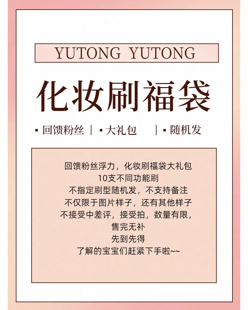 ⭐小红书推荐⭐雨潼化妆刷福袋10支不同功能随机发部分不是雨潼标偶有瑕疵接受拍,所属化妆刷分类,由淘宝网挑选推荐!小红书抖音网红同款!哪里有卖雨潼化妆刷福袋10支不同功能随机发部分不是雨潼标偶有瑕疵接受拍和多少钱质量怎么样✅。
