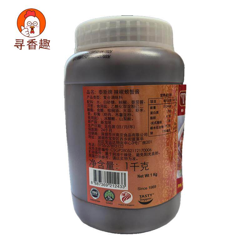 新加坡进口辣椒螃蟹酱蟹煲酱海鲜调味即煮酱chilli sauce1kg crab由
