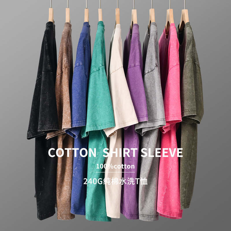 为您提供商品水洗上衣男女t恤夏季 T恤纯色宽松落肩袖 240g重磅纯棉做旧复古短袖的详细介绍,