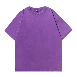 水洗上衣男女t恤夏季 T恤纯色宽松落肩袖 240g重磅纯棉做旧复古短袖由