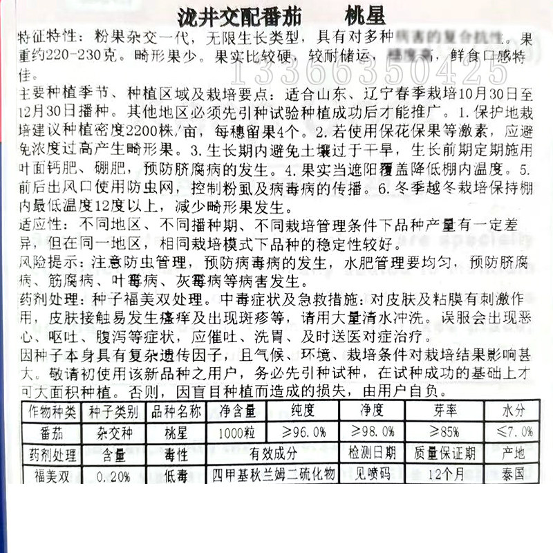 为您提供商品春播日本进口泷井粉果西红柿种子硬度糖度高口感好 桃星番茄种子的详细介绍,