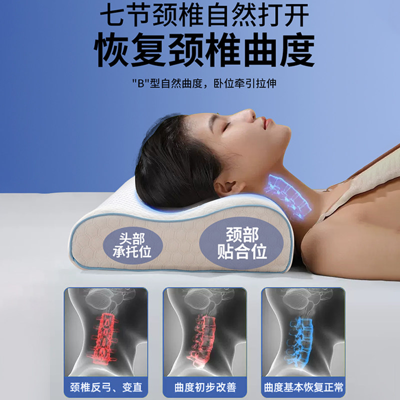 成人家用护颈枕单人 反弓乳胶牵引枕头护颈椎助睡眠专用枕芯一对装