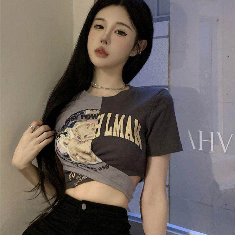 ⭐小红书推荐⭐露肚子短袖 t恤 y2k千禧辣妹上衣女学生设计感夏天拼接撞色交叉短款,所属T恤分类,由淘宝网挑选推荐!小红书抖音网红同款!哪里有卖露肚子短袖 t恤 y2k千禧辣妹上衣女学生设计感夏天拼接撞色交叉短款和多少钱质量怎么样✅。