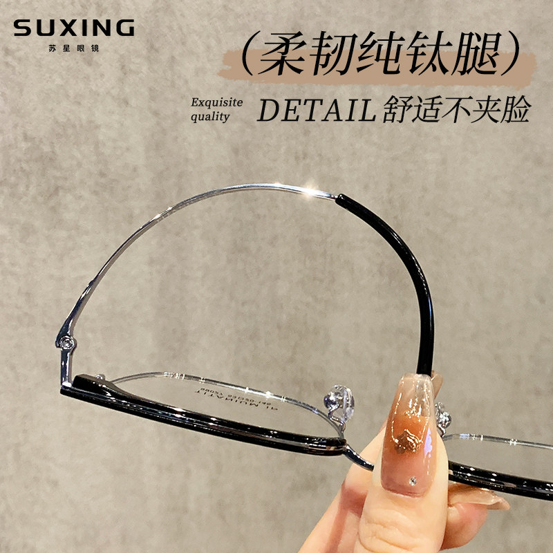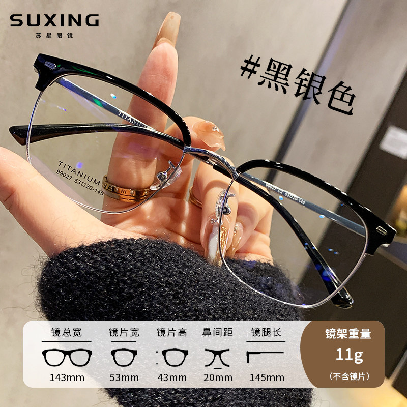 克罗纯钛黑框眼镜半框眼镜近视眼镜高级变色定制成品光学眼镜