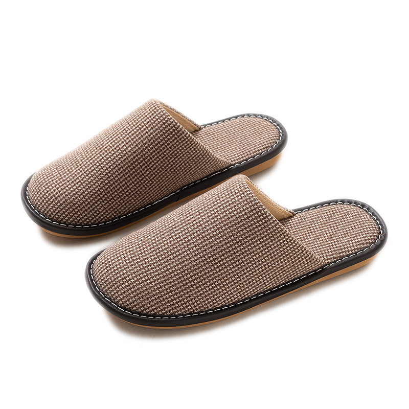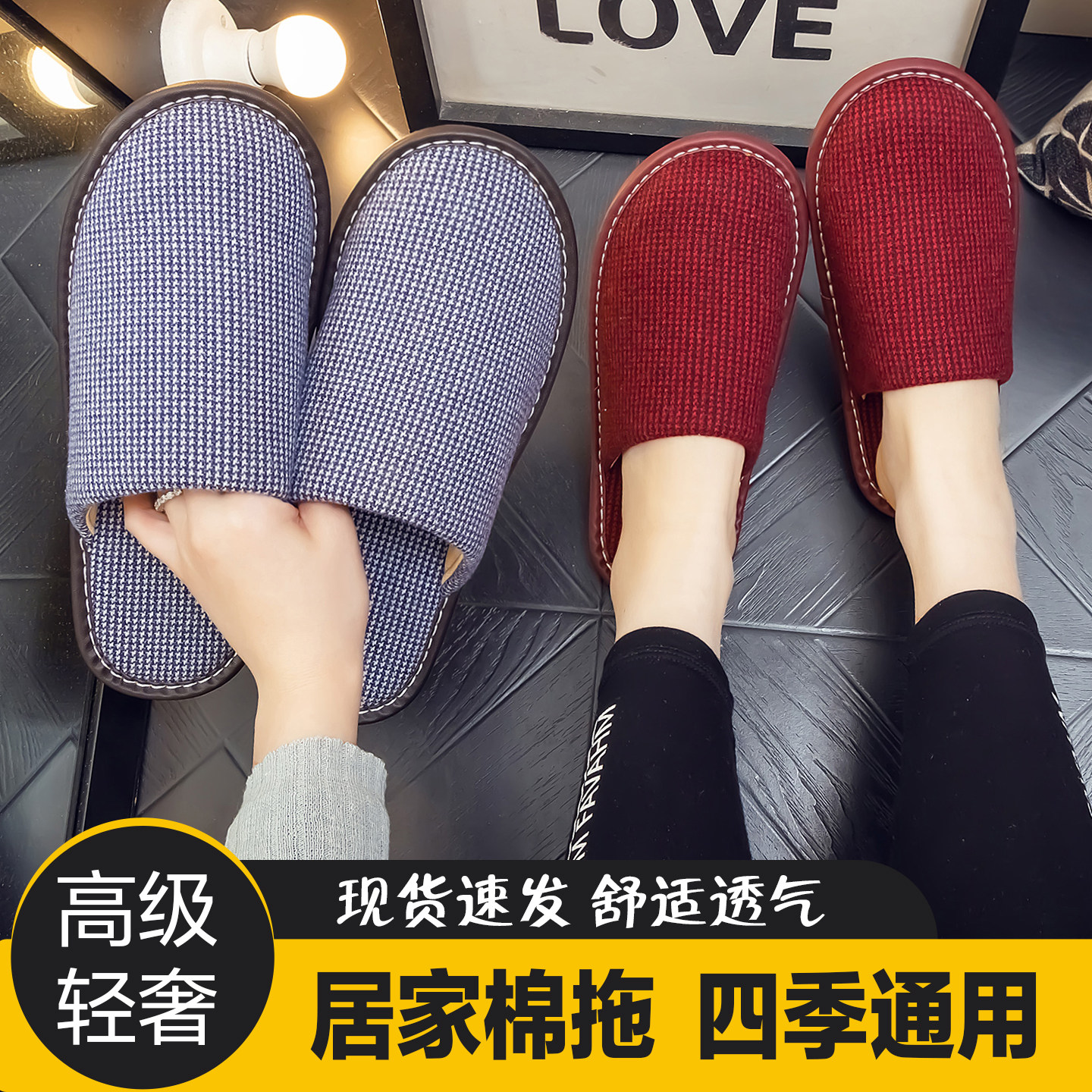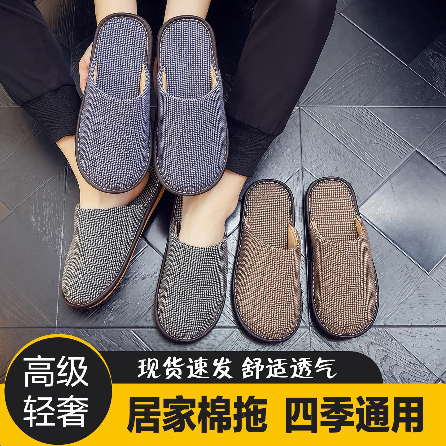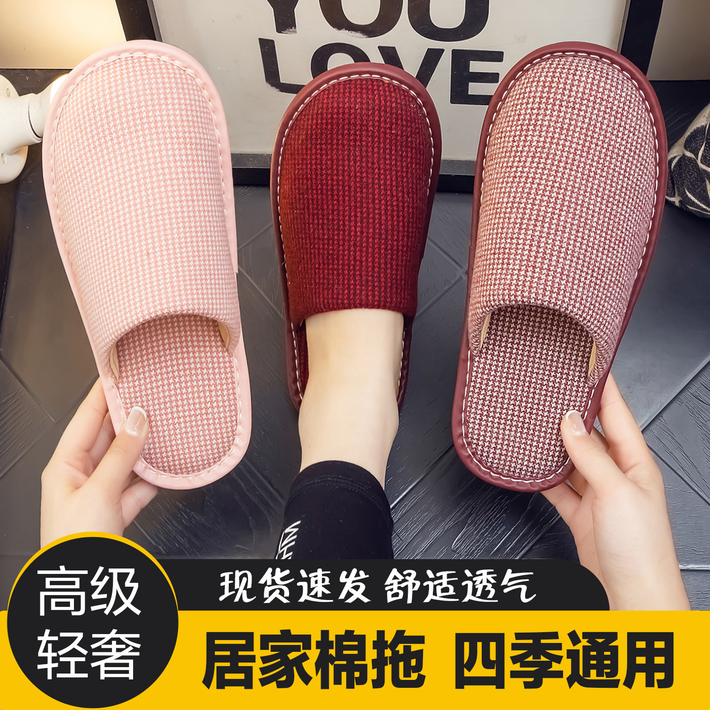 四季 男女室内家用木地板防滑静音软底棉麻家居鞋 春秋包头布艺拖鞋