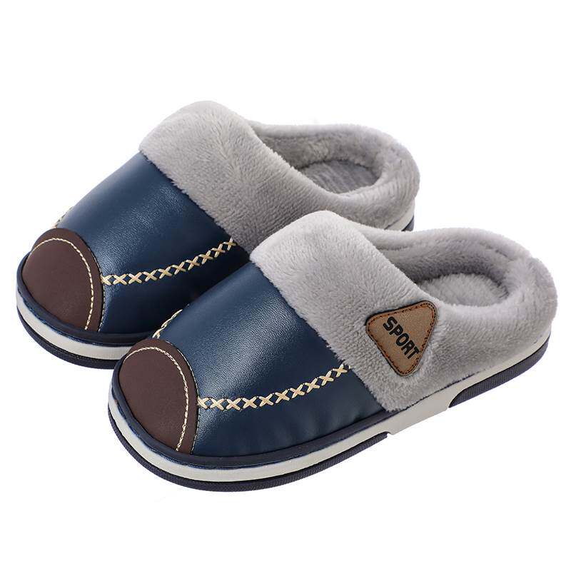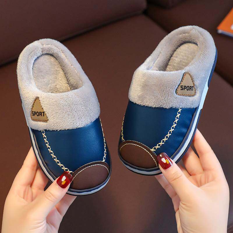 .2022新款 皮面男女童冬天宝宝家居防滑包跟小童小 儿童防水棉拖鞋由