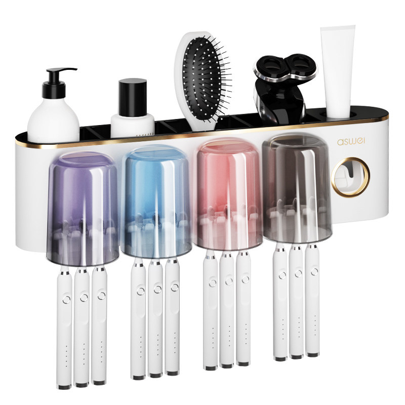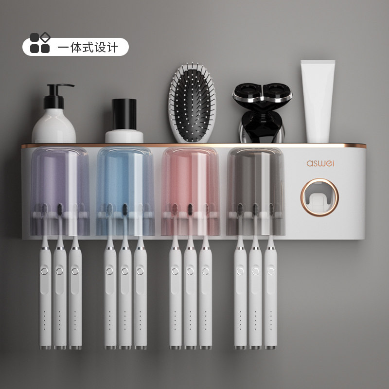 牙刷置物架牙膏牙杯电动漱口杯刷牙杯子家庭收纳免打孔卫生间壁挂