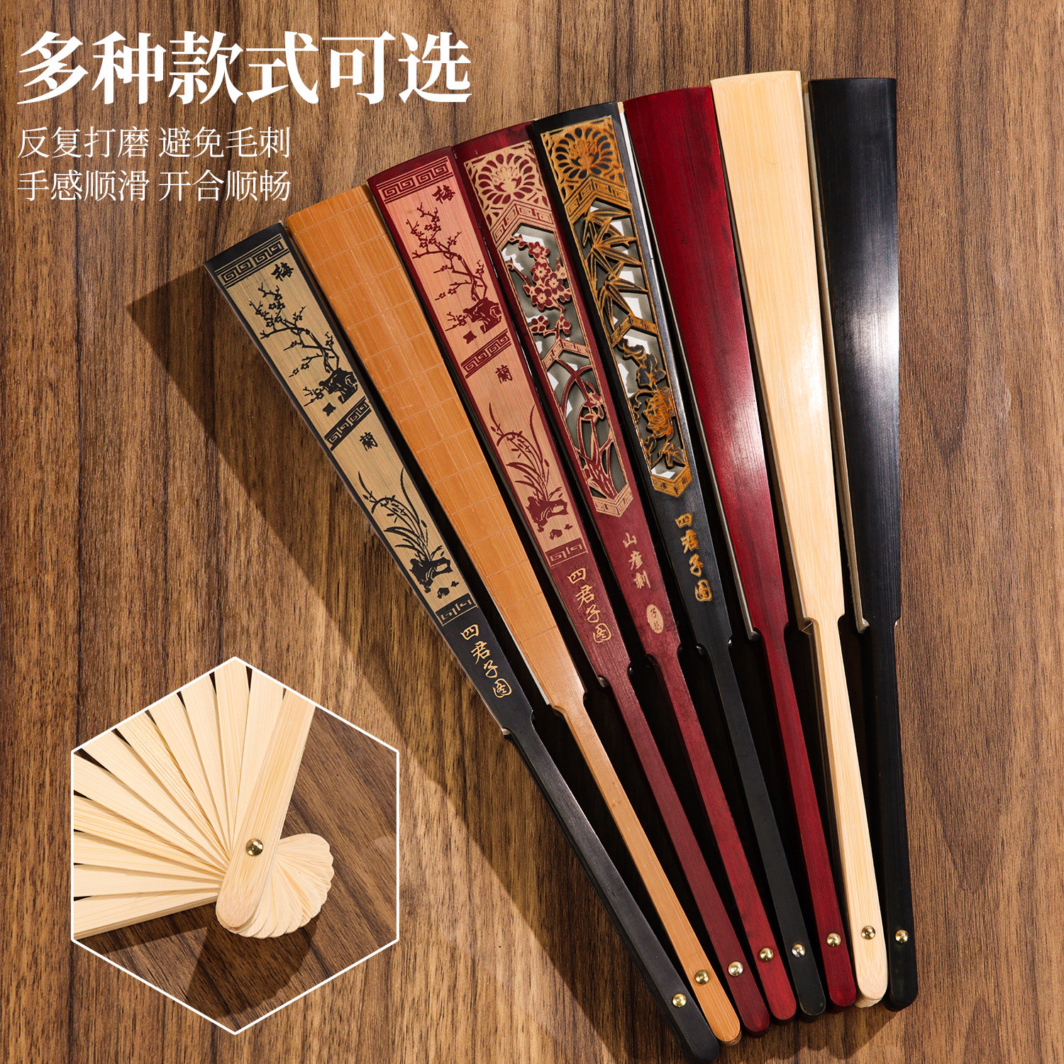 新中式 女扇便携折叠扇中国风汉服旗袍扇古典竹扇 折扇古风扇子夏季