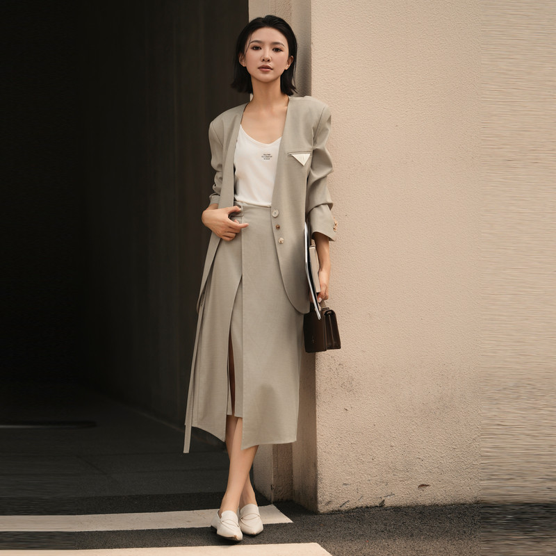 女职业正装 大学生面试女士高级黑休闲西服外套 套装 达佳诗灰色西装