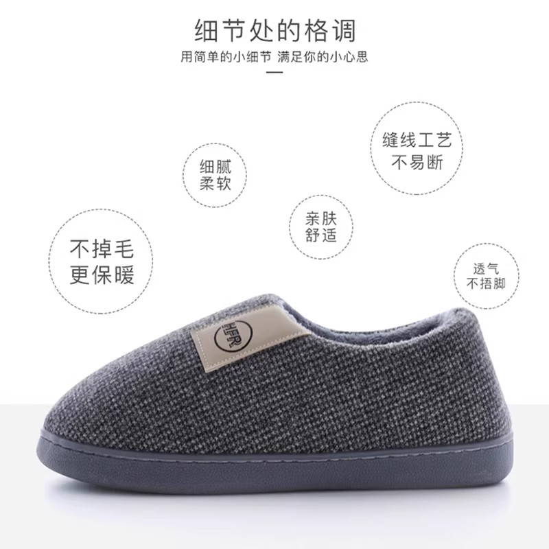 冬季 洁丽雅大码 女款 秋冬室内居家保暖情侣简约毛绒棉鞋 棉拖鞋 男士