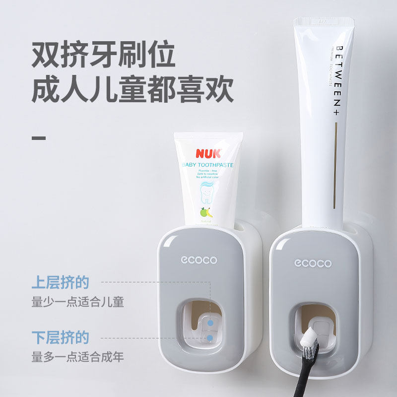为您提供商品挤压器套装 家用免打孔牙刷置物架 全自动挤牙膏神器吸壁挂式 ecoco的详细介绍,