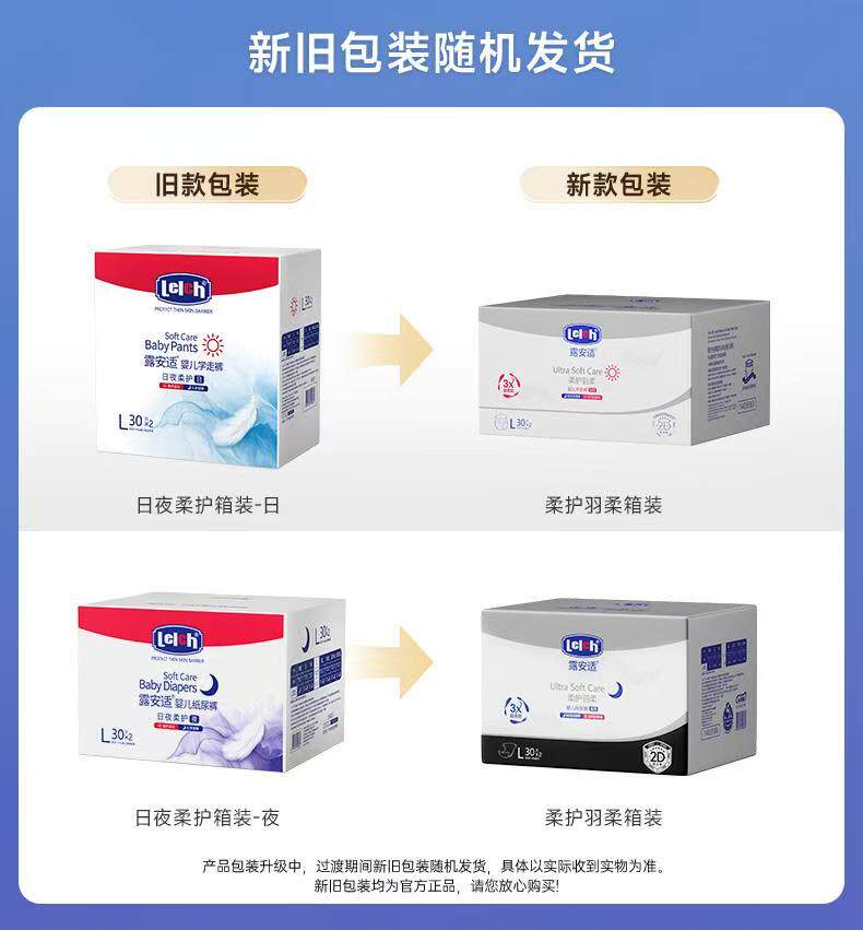 透气拉拉裤 露安适柔护羽柔裤 尿不湿 包装 箱装 纸尿裤 拉拉裤由