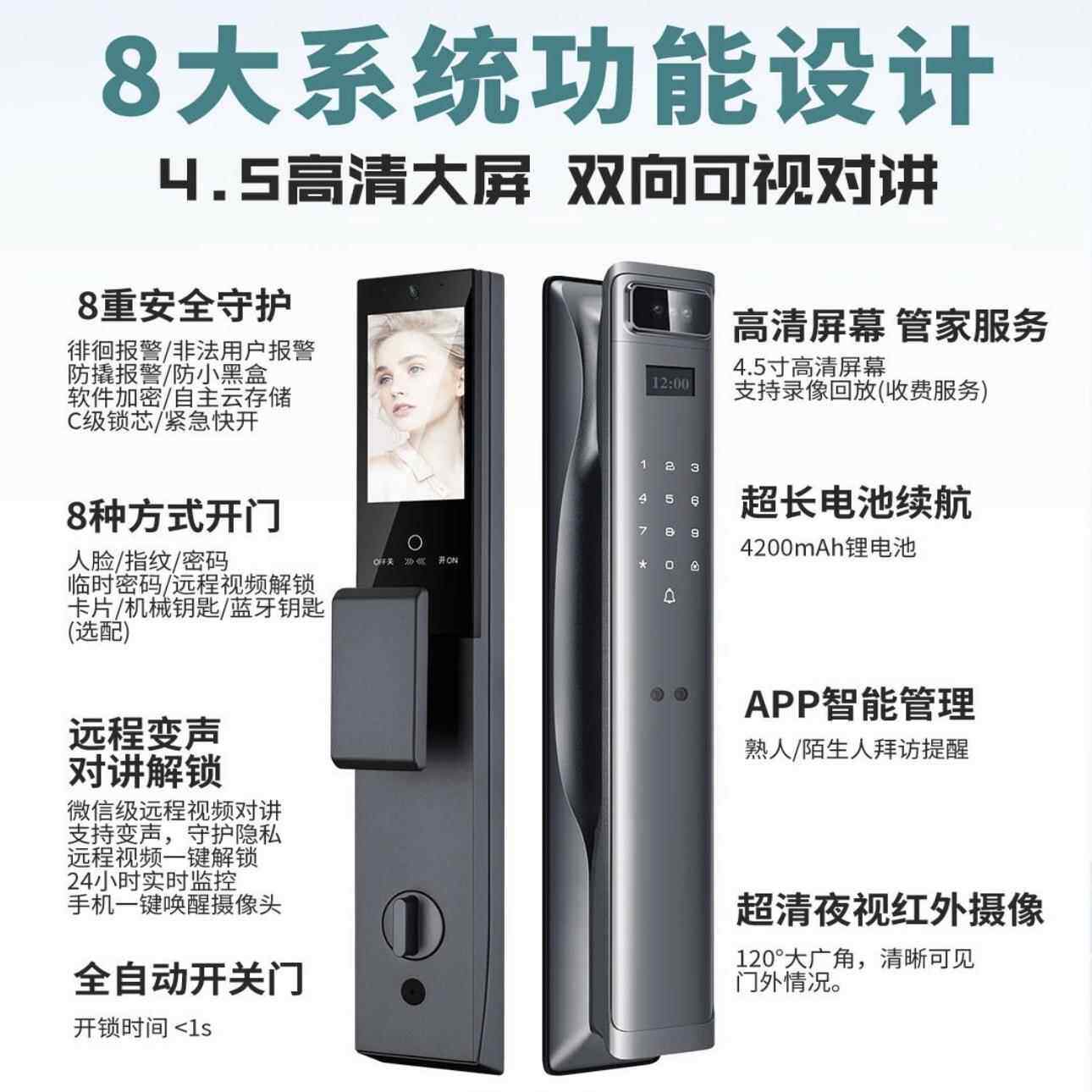 为您提供商品锁滴T29指纹锁指纹人脸识别全自动防盗门智能电子门锁猫眼家用的详细介绍,