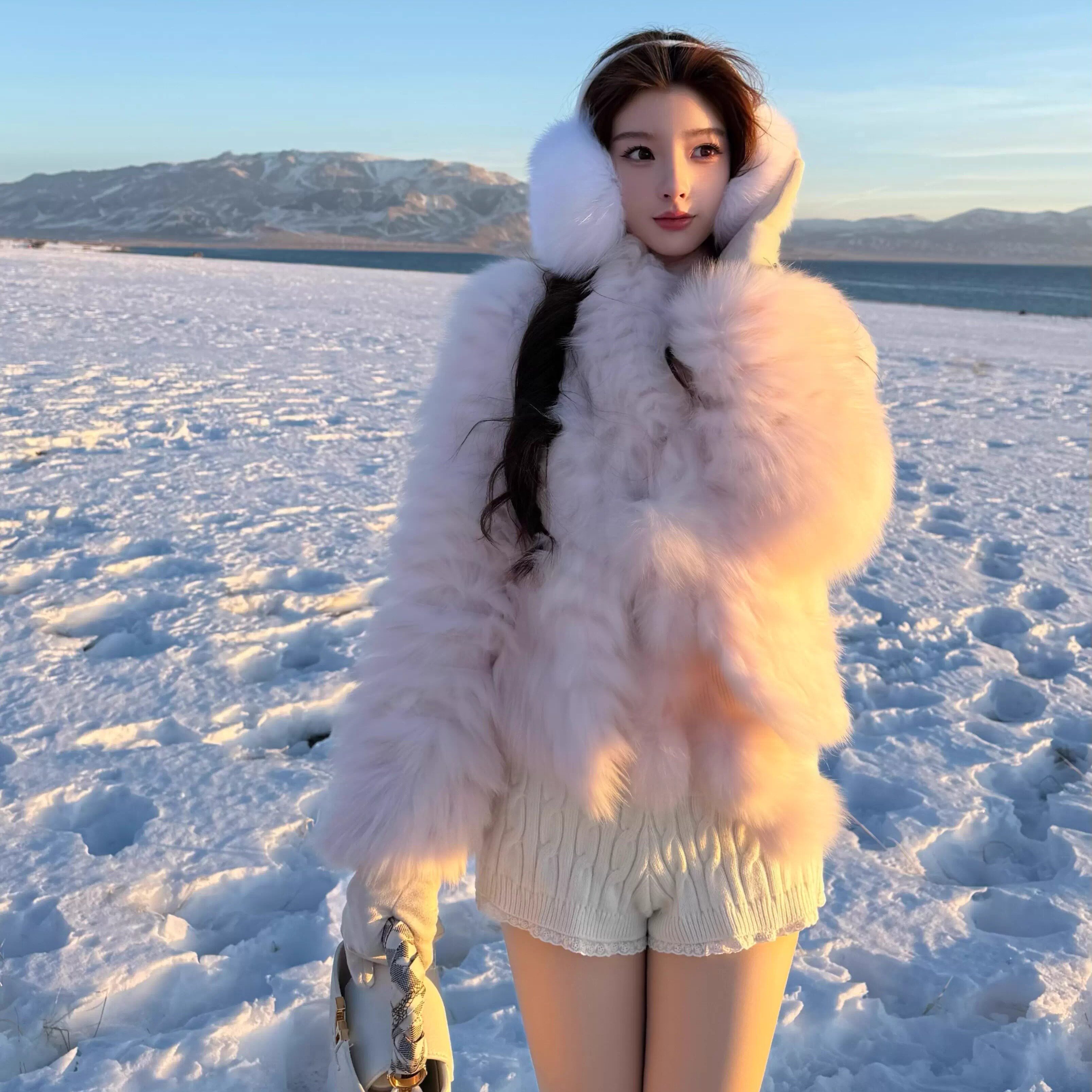 真狐狸毛温柔贵气樱花粉设计感车条短款 皮草外套 樱恋雪 Layyyy