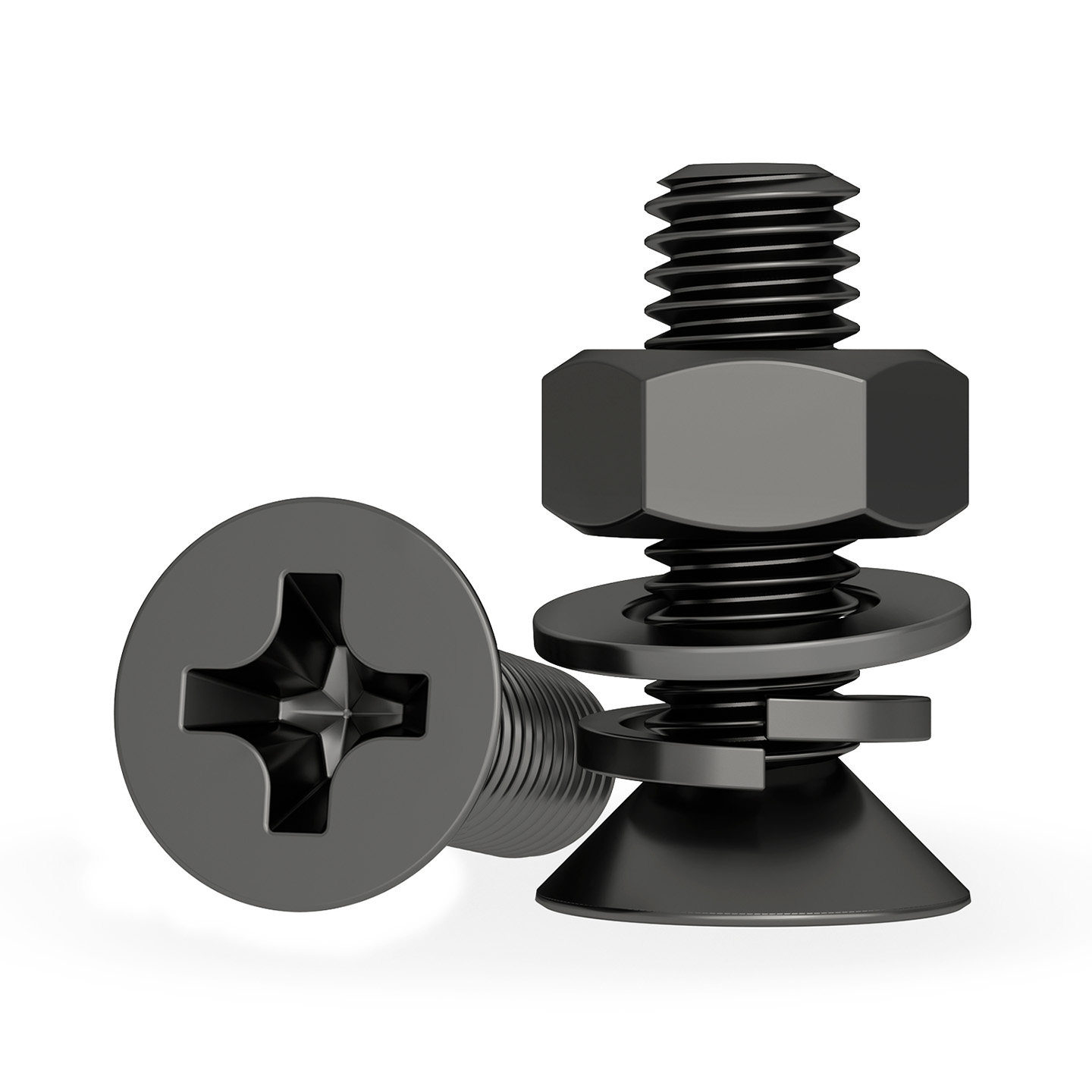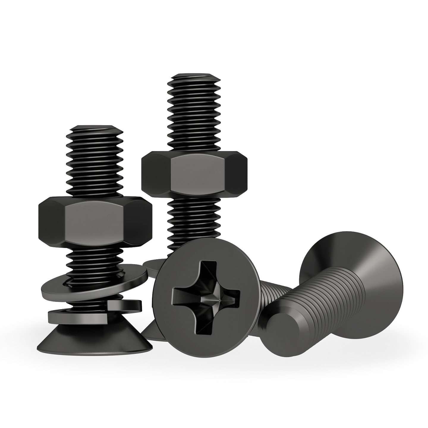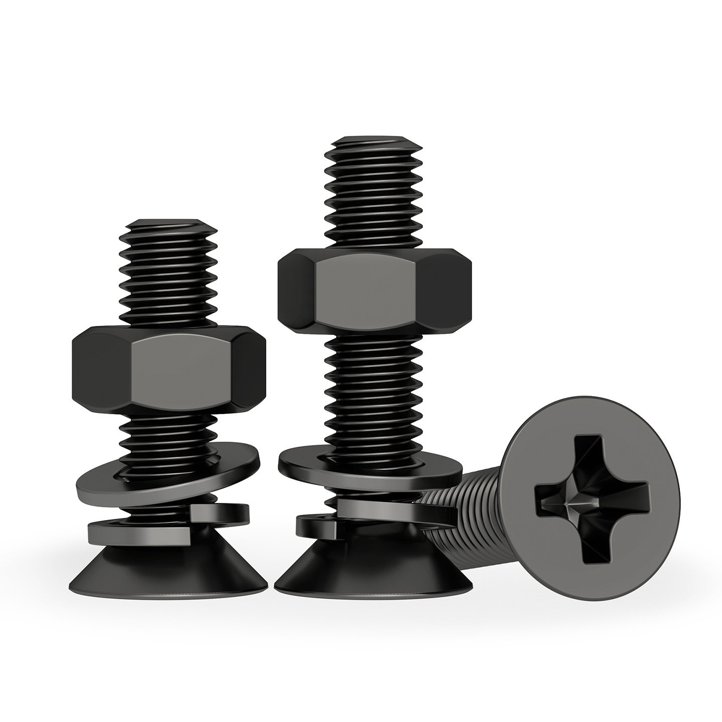 组合大全平头螺钉螺帽平垫弹垫M3M4M5 黑色沉头十字螺丝螺母套装
