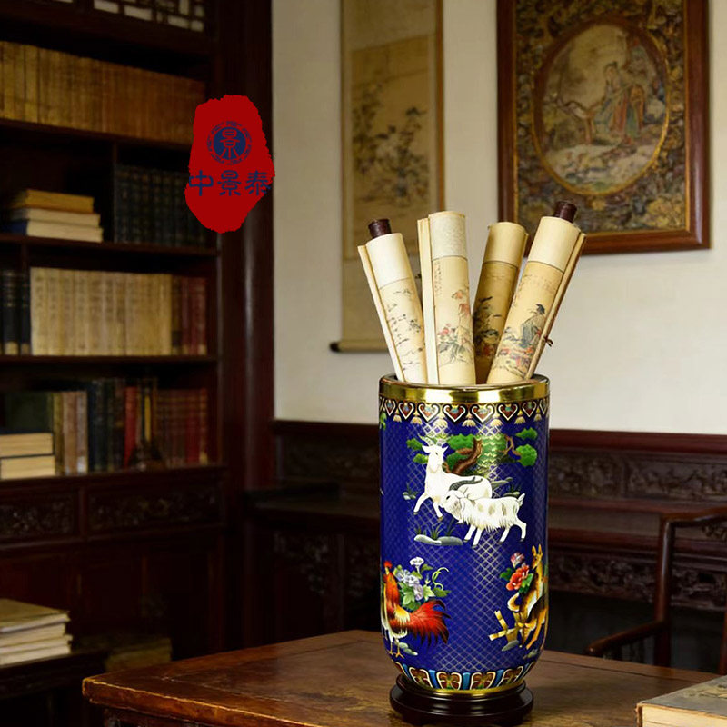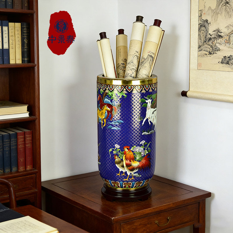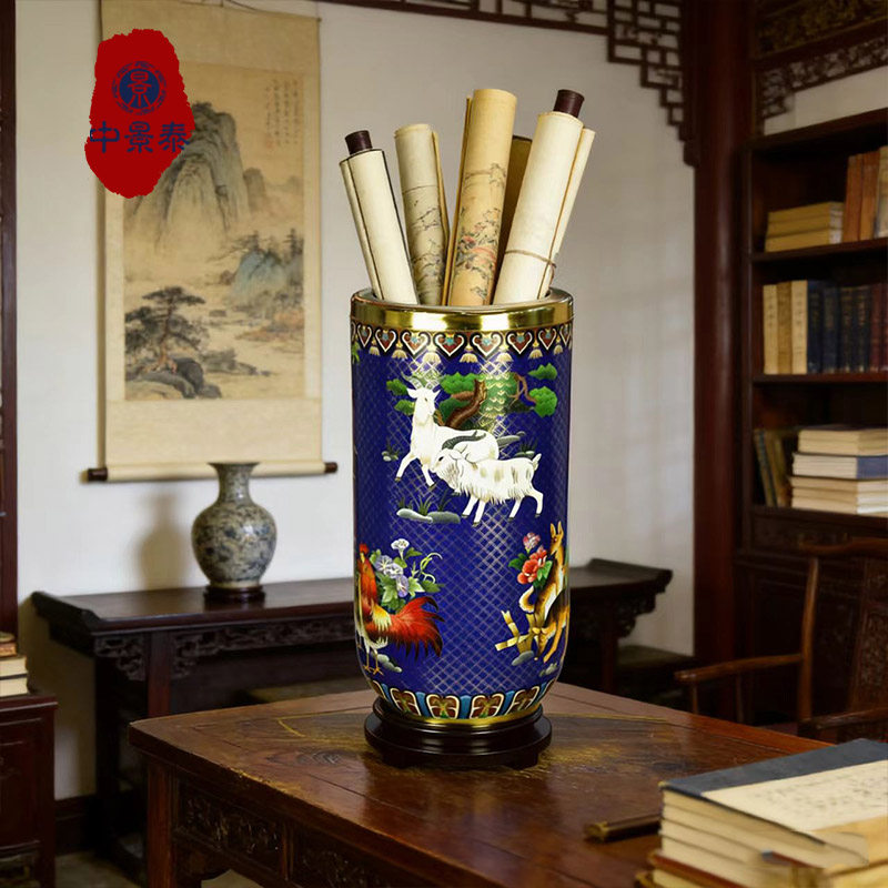 北京珐琅景泰蓝花瓶20寸生肖画筒50公分办公书房摆件老人生日礼品由