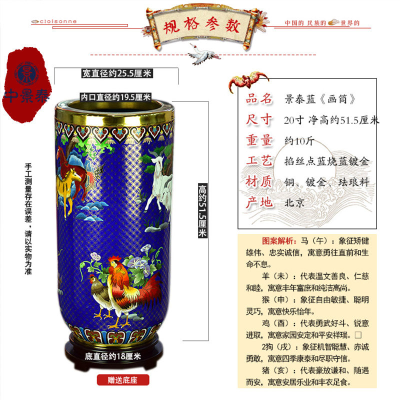 为您提供商品北京珐琅景泰蓝花瓶20寸生肖画筒50公分办公书房摆件老人生日礼品的详细介绍,