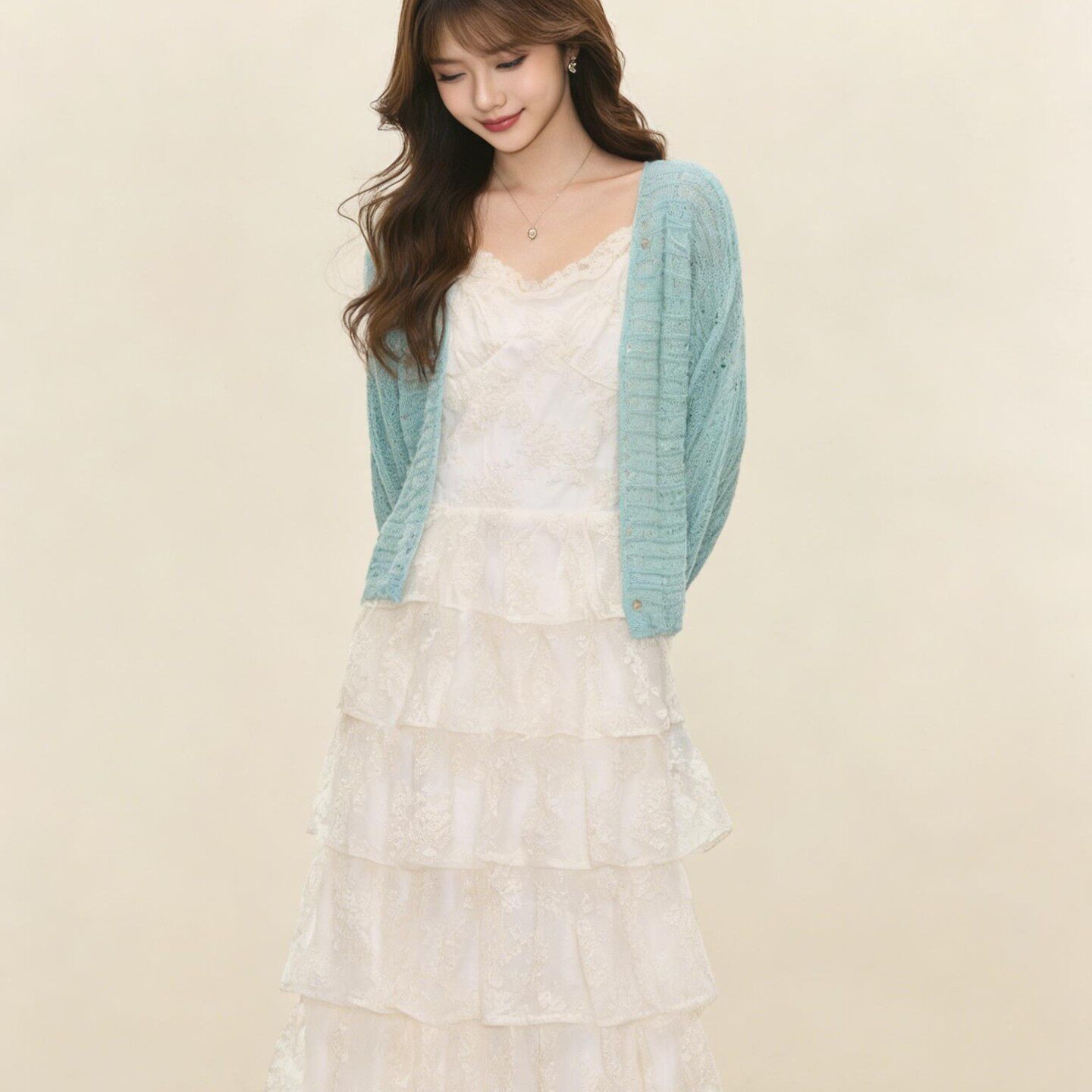 WESTAYOONE薄荷绿毛衣开衫 蕾丝蛋糕吊带连衣裙女春夏新款