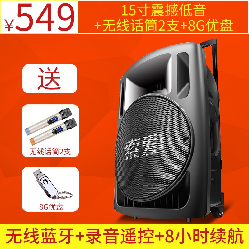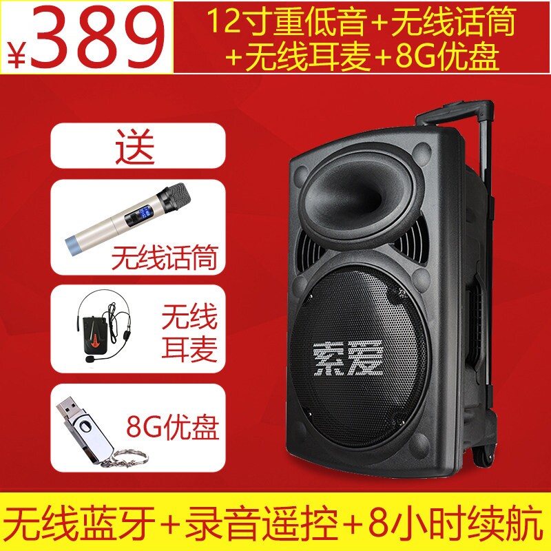 索爱音箱户外音响k歌蓝牙大音量拉杆移动演出广场舞音响一体机