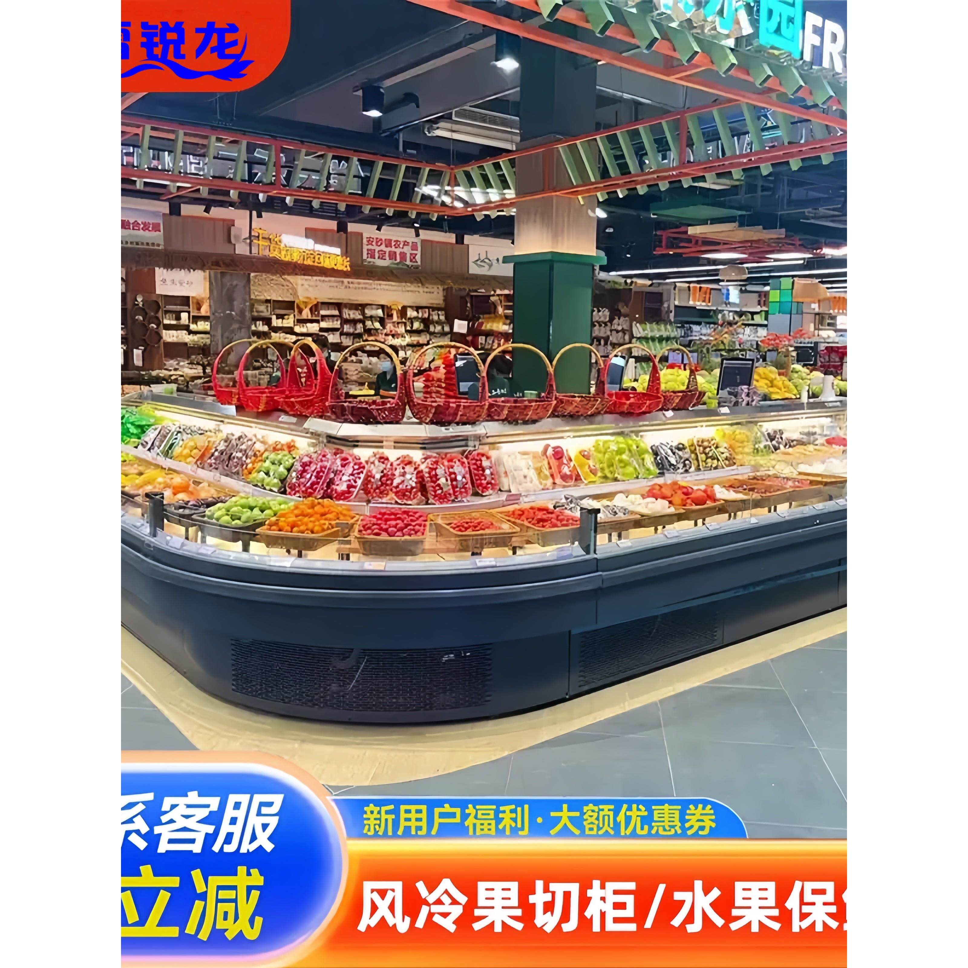 风冷果切柜双层水果保鲜柜超市果蔬冷藏柜商用圆弧转角展示柜定制