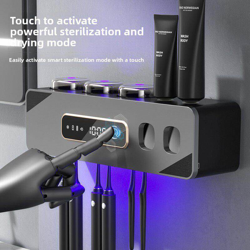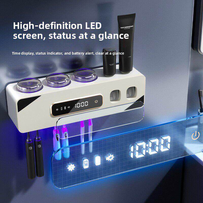 牙刷消毒器杀菌烘干电动自动挤牙膏一体机置物架吹风仓智能壁挂式