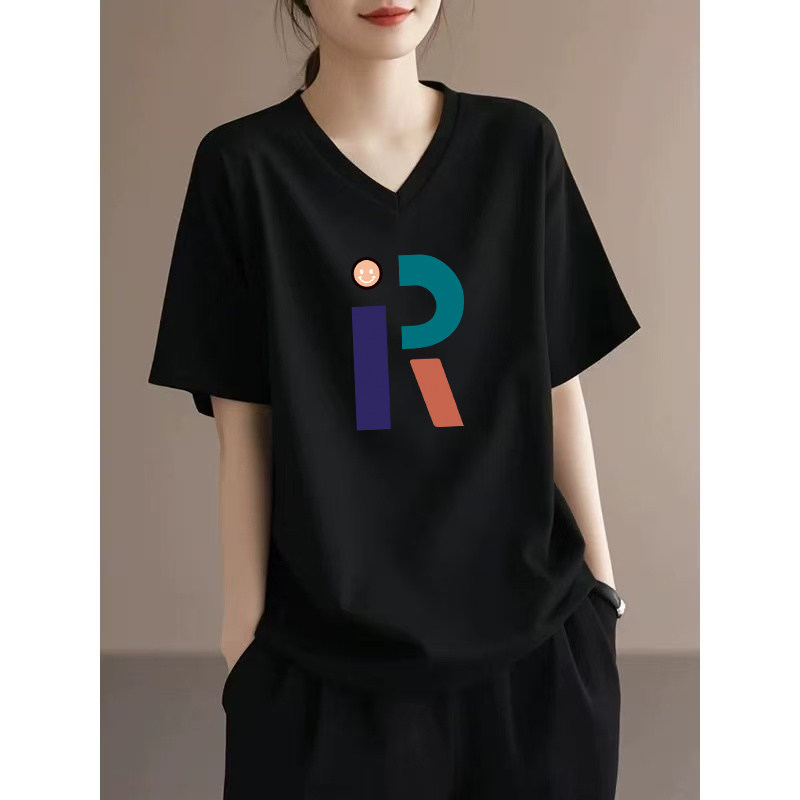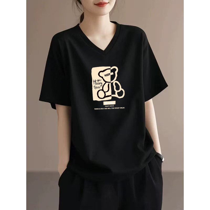 宽松显瘦打底衫 黑色纯棉V领短袖 上衣 百搭大码 新款 t恤女装 2026夏季由