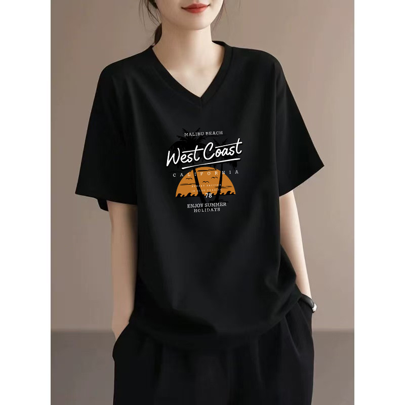 为您提供商品宽松显瘦打底衫 黑色纯棉V领短袖 上衣 百搭大码 新款 t恤女装 2026夏季的详细介绍,