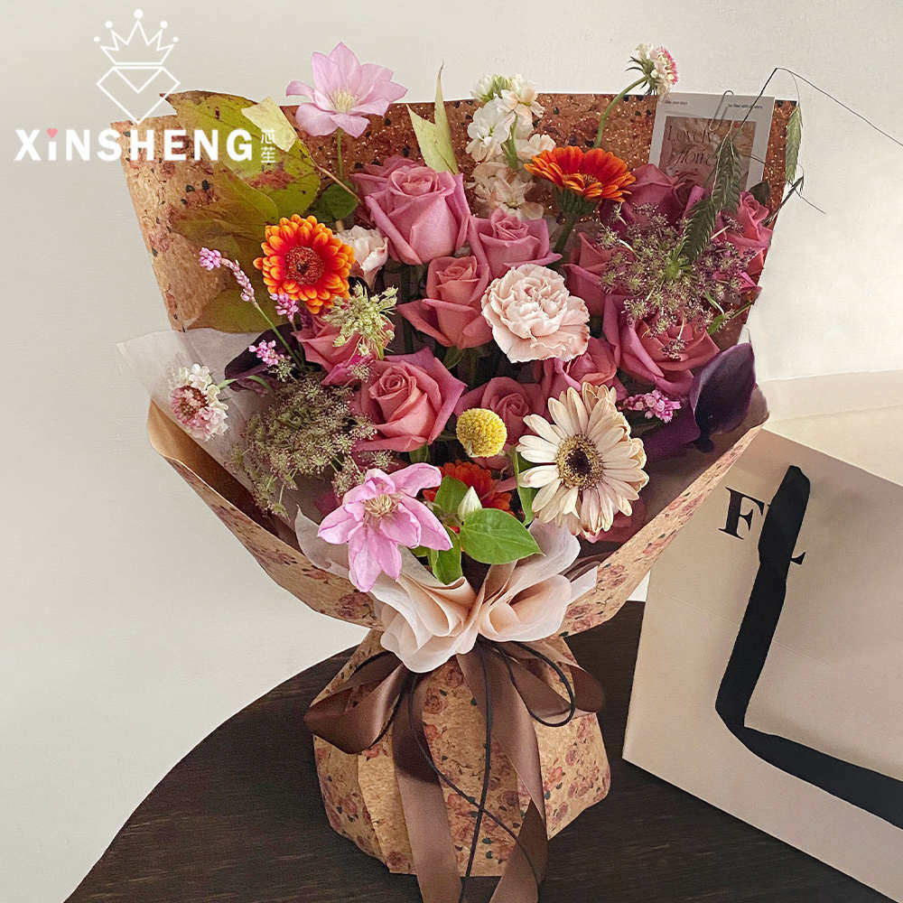 芯苼 纸材料 复古皮革纹理软布鲜花束包花资材手工花艺diy花店包装