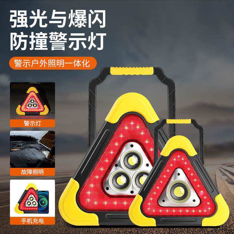 汽车载爆闪警示牌防追尾三脚架警示灯应急停车用故障太阳能三角架由