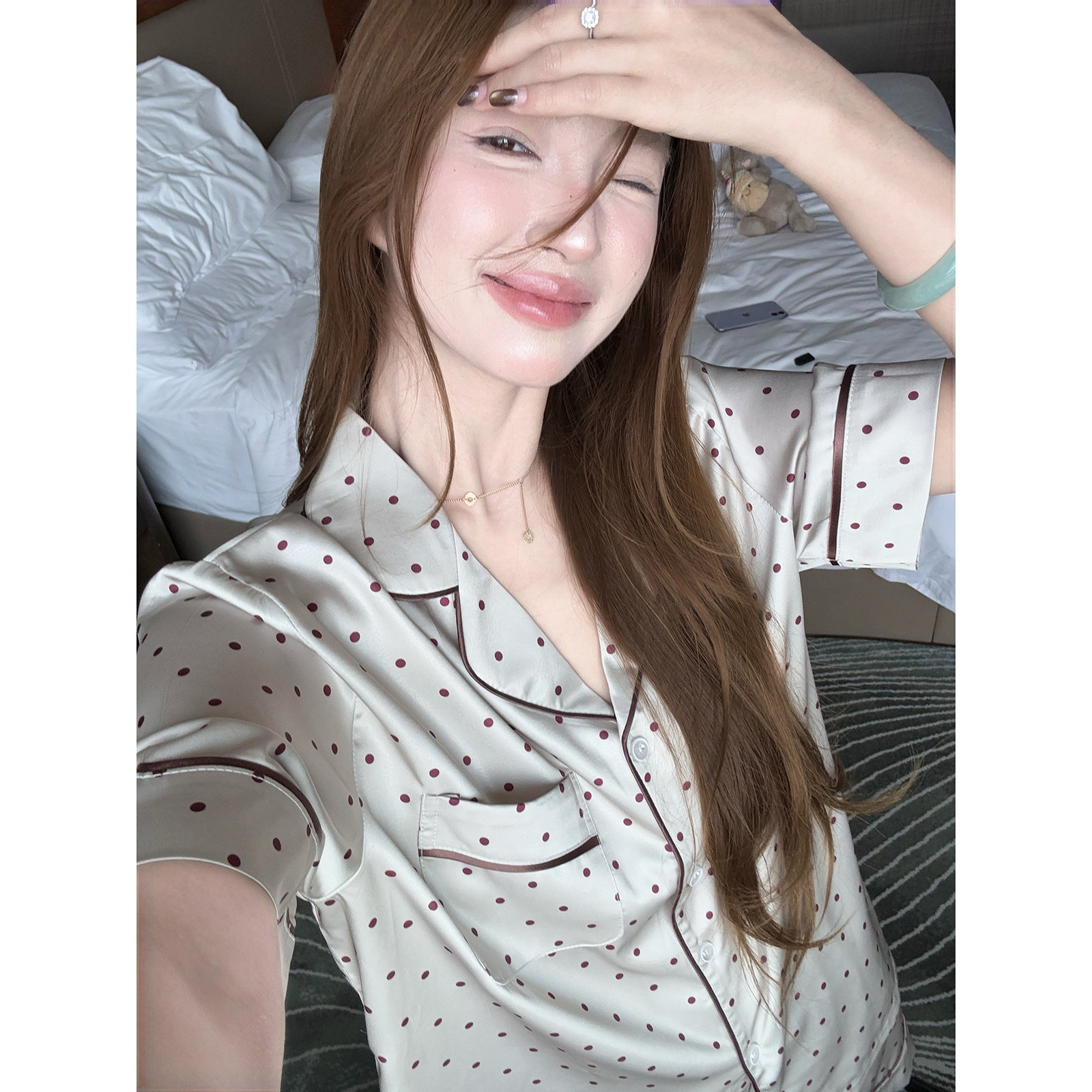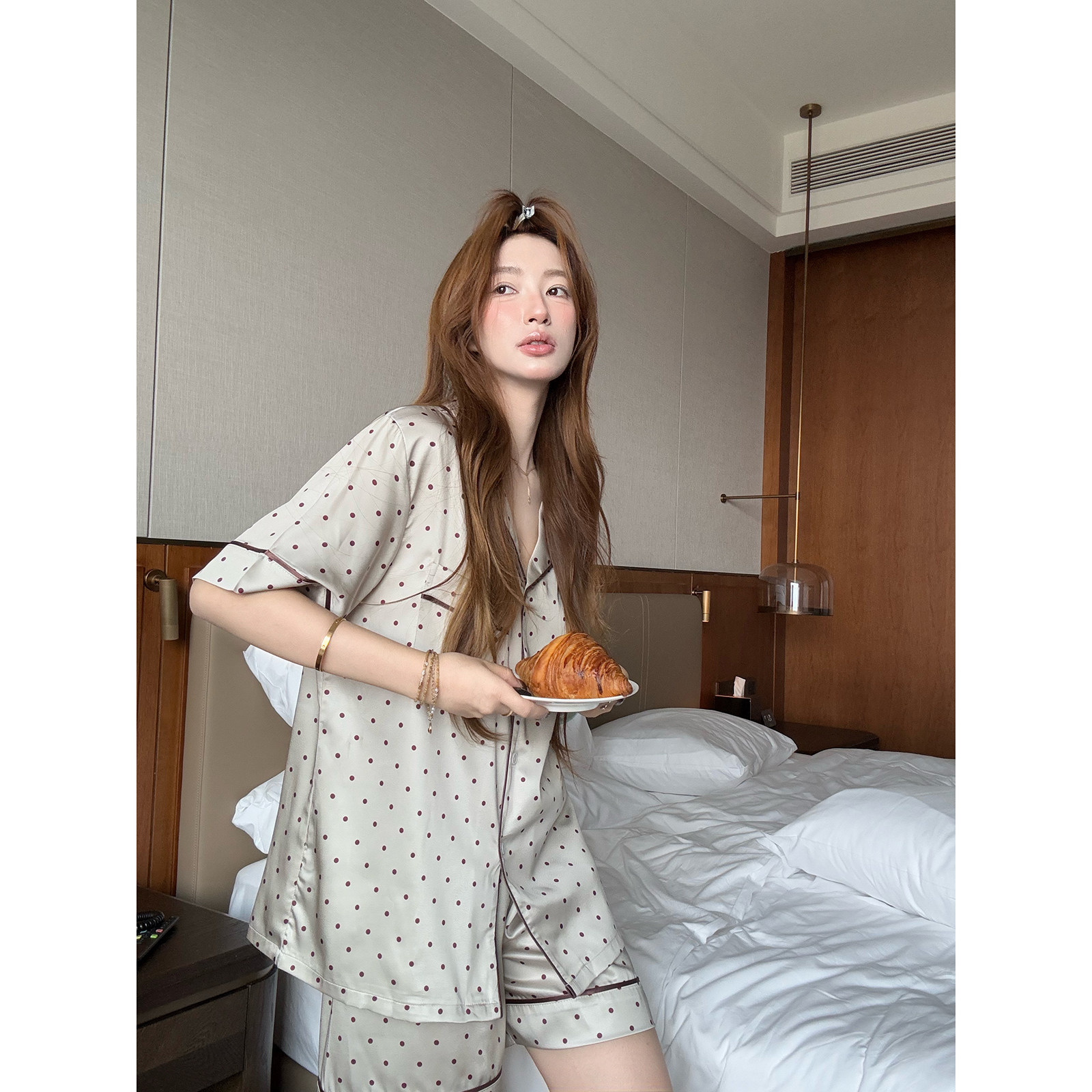 冰丝波点睡衣套装 JoyceBra 夏季 新款 韩系高级感可外穿家居服 女款由