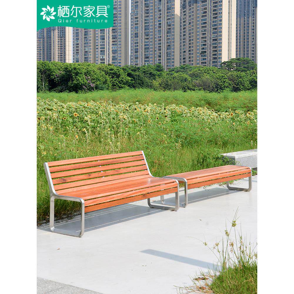 不锈钢公园椅户外长椅小区长凳商场座椅防腐木休息长条凳排椅凳子