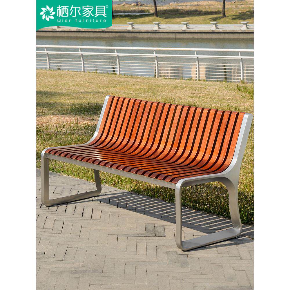 不锈钢公园椅户外长椅庭院双人长条凳子室外防腐木塑木休闲铁座椅