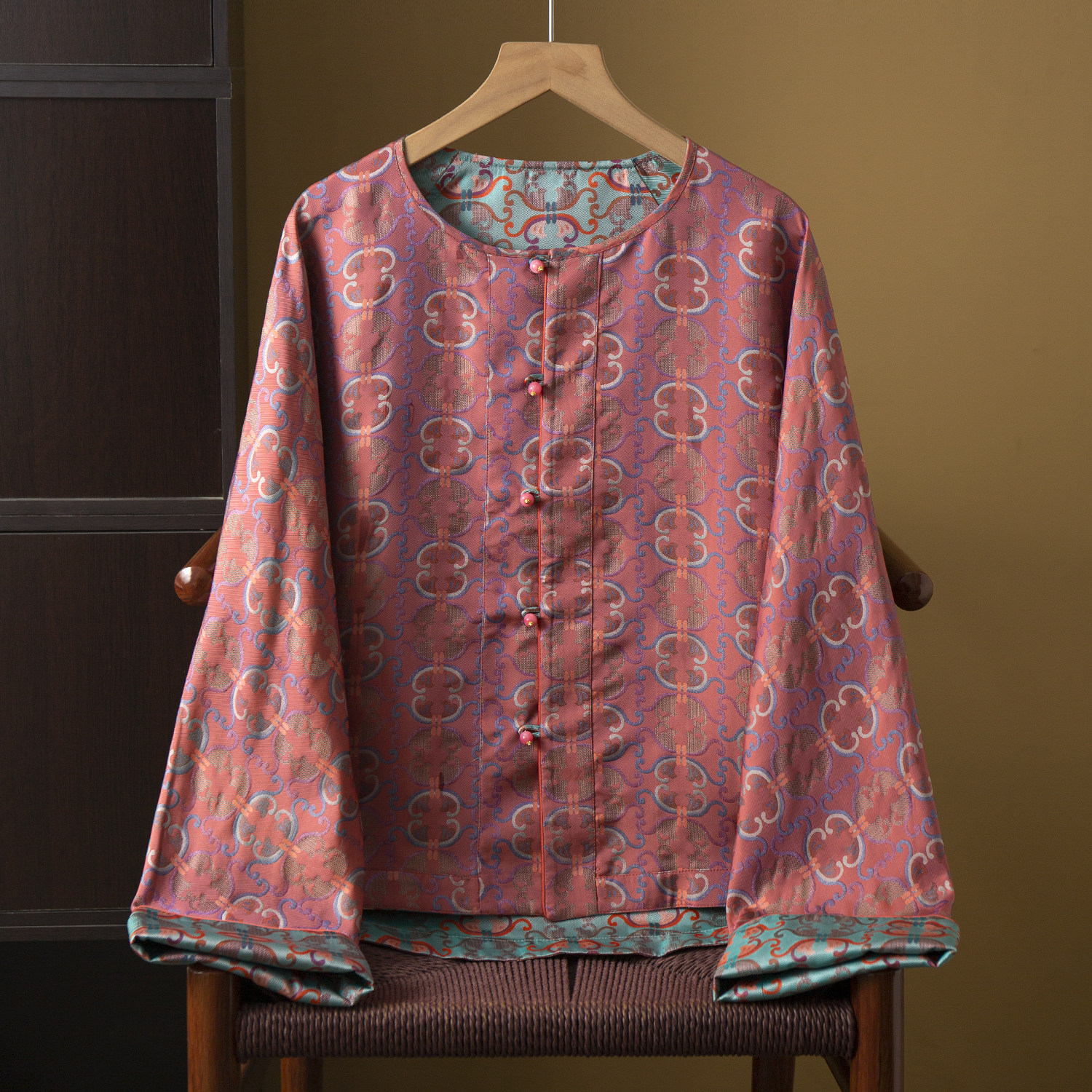 外套女圆领开衫 上衣 真丝挽袖 丝艺双面穿100%桑蚕丝宋锦国风新中式