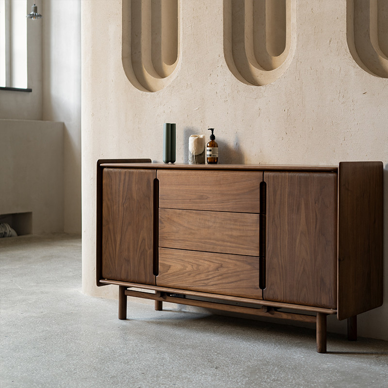 山隐造物南风餐边柜黑胡桃樱桃实木置物碗橱斗柜多功能柜北欧家具由