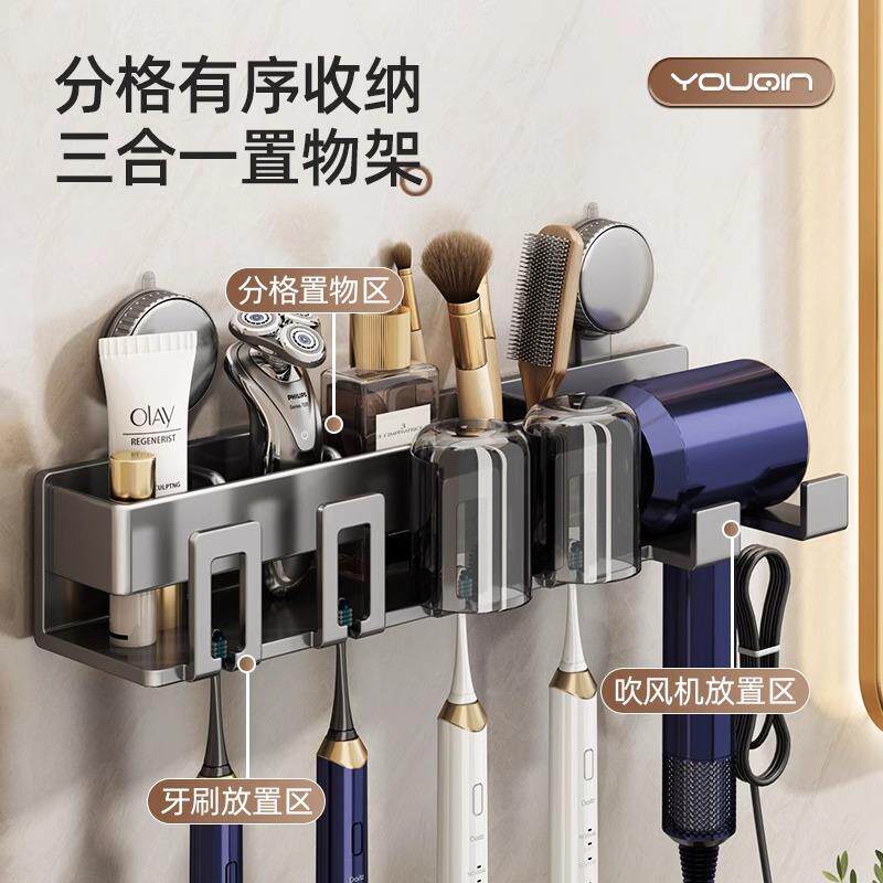 刷牙杯洗漱口杯架 吸盘牙刷置物架免打孔卫生间吹风机支架壁挂式