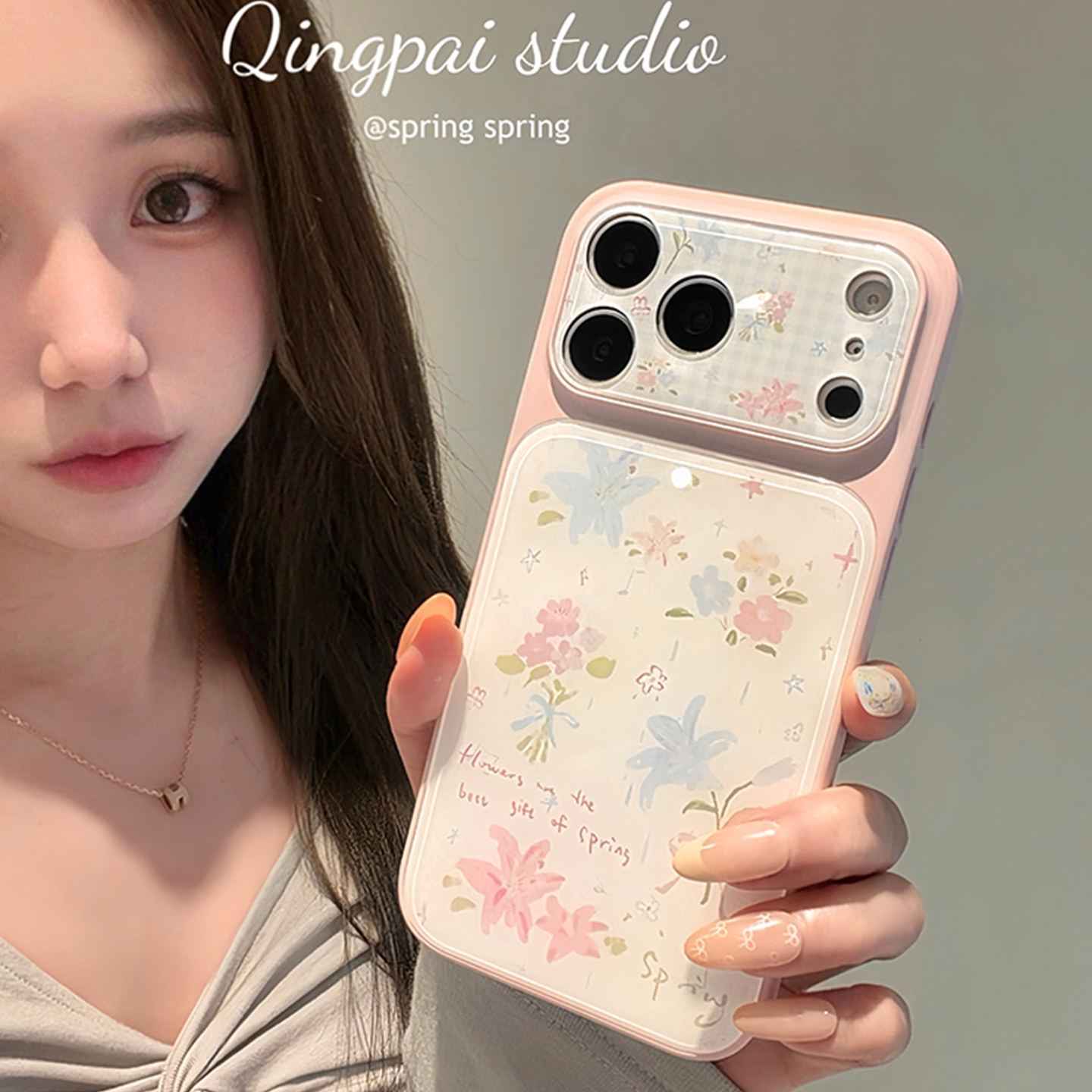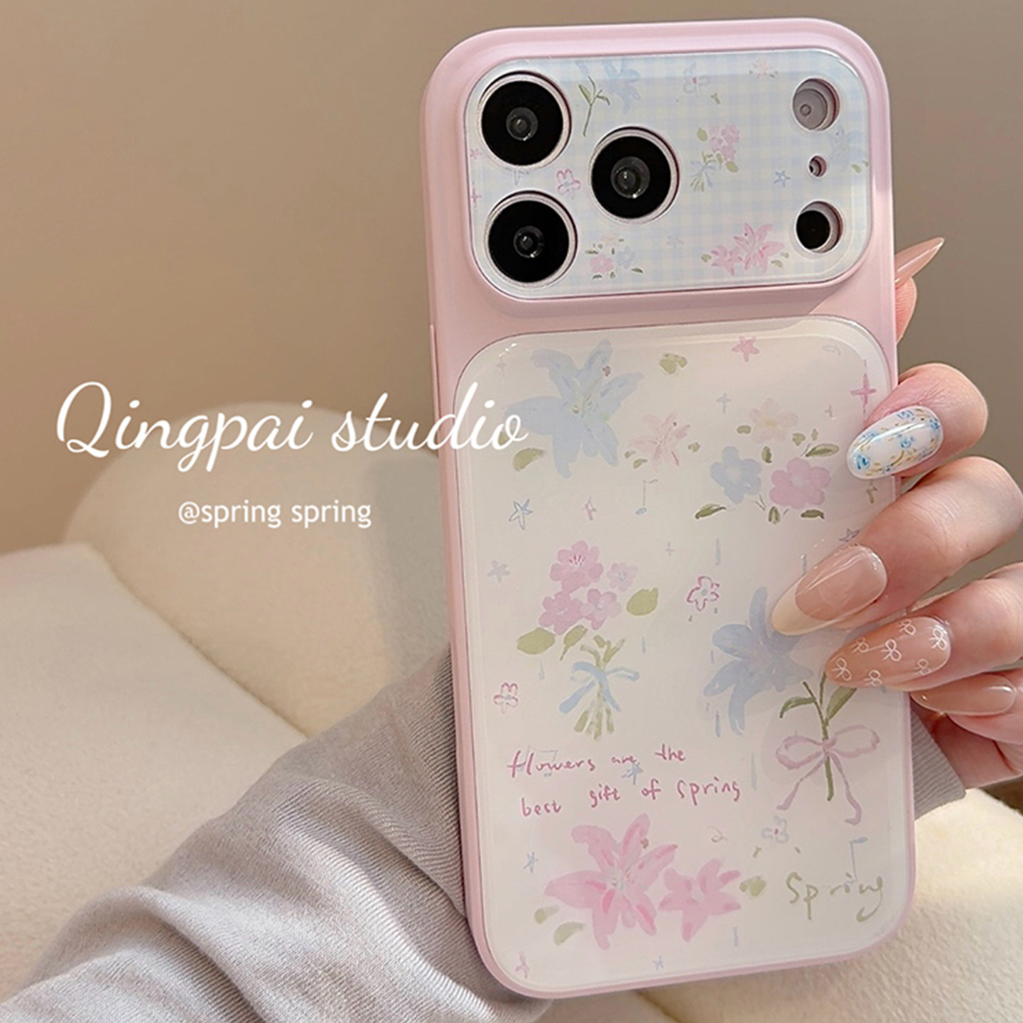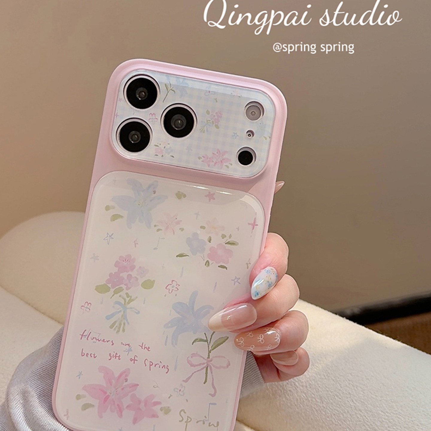 15女款 14甜美温柔感大视窗全包硬壳 韩系ins风涂鸦粉色花朵适用苹果17promax手机壳iphone16pro新款 轻派早春季