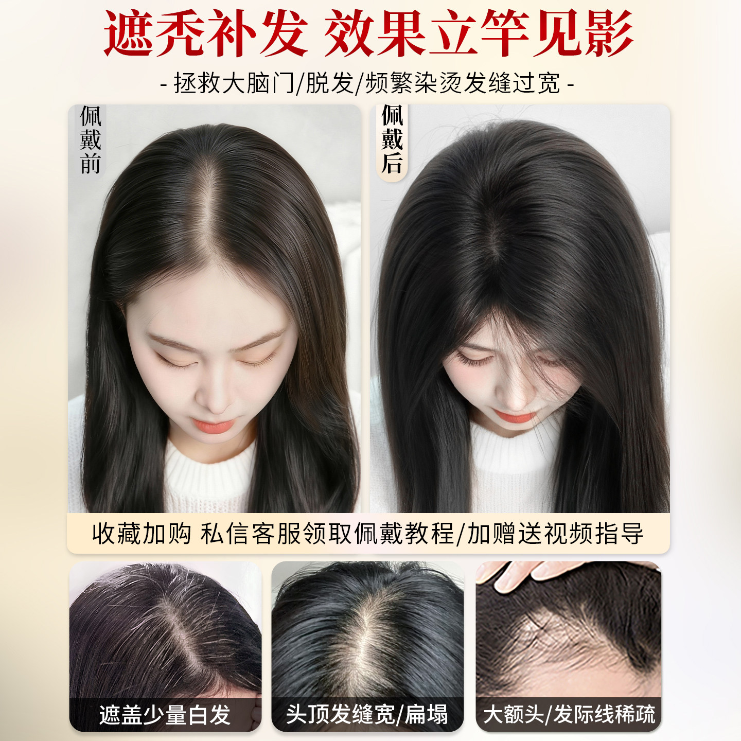 假发女片头顶增发量夏季 隐形遮白发神器蓬松高颅顶真发刘海片 薄款