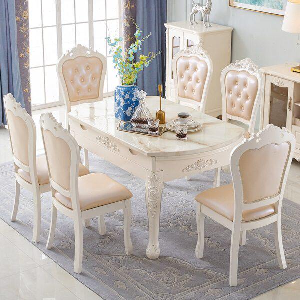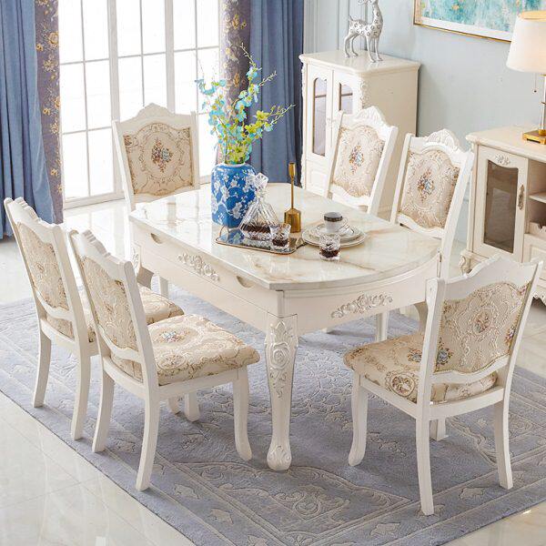 餐桌椅组合实木伸缩饭桌多功能简欧折叠大理石圆桌家用小户型 欧式由