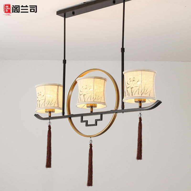 灯具长方形三头中国风禅意书房吧台茶室灯简约创意餐厅吊灯 新中式
